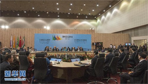金砖国家领导人会晤现场 具体说来,我们应该在以下几个方面作出努力。 第一,坚定不移推动经济可持续增长。金砖国家经济增长近来有所放缓,这既同外部因素有关,也是各国调整经济结构的客观结果。下一步,我们应该通过必要的经济改革,增强内生动力,保持经济稳定增长。我们应该坚持包容性增长理念,用社会政策托底宏观经济政策,织牢社会安全网,推动经济从量的增长转向质的提升。我们应该协调经济发展、社会发展、环境保护,拓展更大经济发展空间。 第二,坚定不移开展全方位经济合作。金砖国家资源禀赋、产业结构具有多样性和互补性,合作潜力巨大。我们应该建立更紧密经济伙伴关系,在贸易和投资领域探索建立一体化大市场,在货币金融方面构建多层次大流通,在基础设施建设领域形成陆海空大联通,在人文领域推动各国人民大交流。我们应该扎实推动务实合作,推动应急储备安排尽早投入运作,更多发挥工商理事会、智库理事会作用,争取各领域合作取得更多早期收获成果,给各国人民带来实实在在的好处。 在各方共同努力下,我们今天就建立金砖国家开发银行达成共识。这是金砖国家合作进程中具有重要和深远意义的成果,体现了金砖国家团结合作、共同发展的政治意愿,不但有助于提高金砖国家在国际金融事务中的话语权,而且更重要的是能够造福我们和发展中国家人民。感谢大家支持金砖国家开发银行落户中国上海。我们愿同各方密切合作,做好充分准备,确保银行尽快启动。 第三,坚定不移塑造有利外部发展环境。世界经济逐步走出低谷,为金砖国家发展提供了更好外部条件。同时,世界经济仍未完全摆脱国际金融危机影响,国际社会期待金砖国家继续保持发展势头。我们应该推动金砖国家在经济总量、对外贸易、国际投资等方面占全球比重继续上升,带动全球范围内的强劲、可持续、平衡增长。我们应该推动完善全球经济治理,把增加发展中国家代表性和发言权的有关共识和决定落到实处,确保各国在国际经济合作中机会平等、规则平等、权利平等。我们应该推动加强全球宏观经济政策协调,防范主要经济体经济政策变动给金砖国家带来负面外溢效应。 第四,坚定不移提高道义感召力。金砖国家主持公道、弘扬正义,致力于建设公平公正的美好世界,是国际关系中的正能量。我们应该放大这种正能量,在国际事务中共同提出方案,伸张正义,践行平等。我们应该积极参与世界反法西斯战争胜利70周年纪念活动,共同维护国际公理,决不允许任何势力为侵略历史翻案。我们应该推动建立全球发展伙伴关系,让世界上的贫困人口改变生活面貌。只要金砖国家人民同世界各国人民携手同心,金砖合作、南南合作和人类发展之路就会越走越宽广。 巴西朋友告诉我,有一本畅销书叫做《巴西:未来之国》,书中寄托了对人类文明的美好希望。我期待着金砖国家能够像书中憧憬的那样,共同成为繁荣、富强、民主、文明的未来之国,开创世界经济增长更加多元、国际关系更加民主的美好未来。